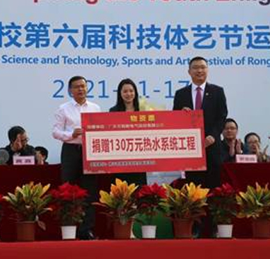 萬(wàn)和為容桂外國(guó)語(yǔ)學(xué)校捐建130萬(wàn)元集成熱水系統(tǒng)